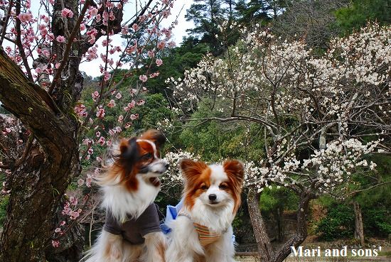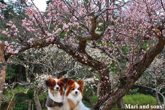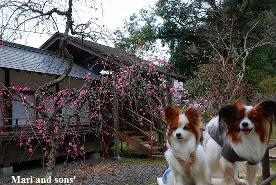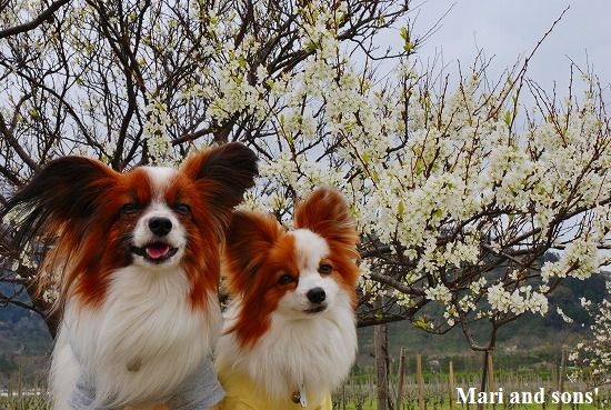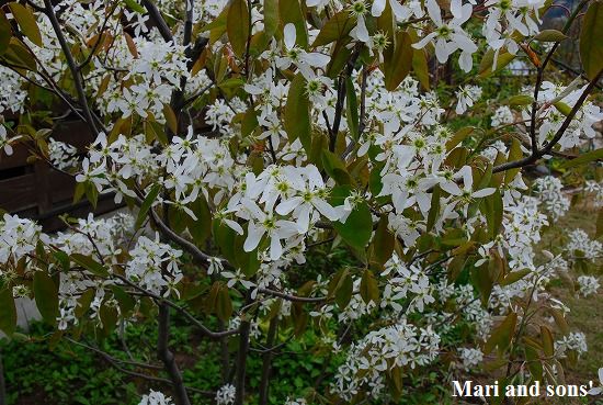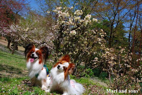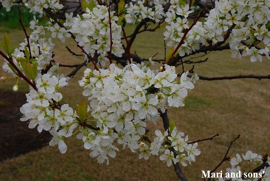庭の奥には 今が盛りとプラムの白い花が咲き誇っています
