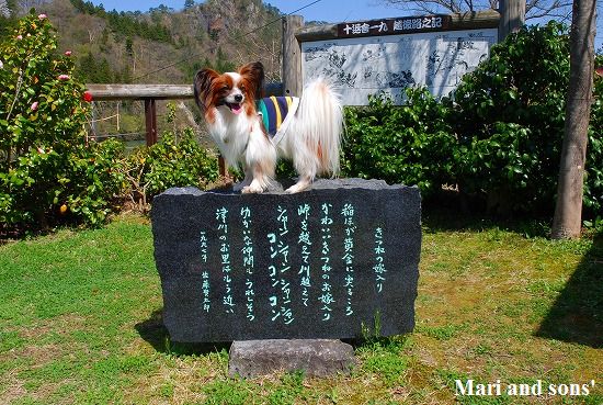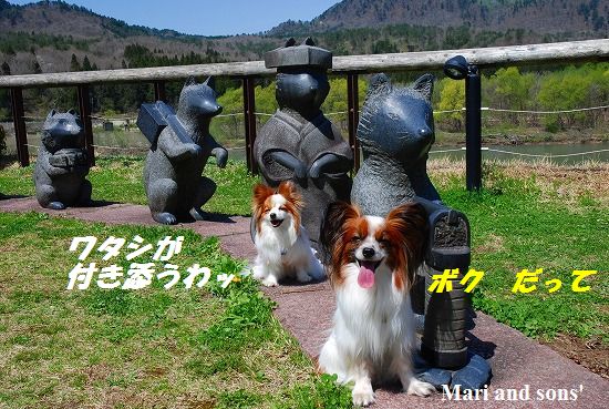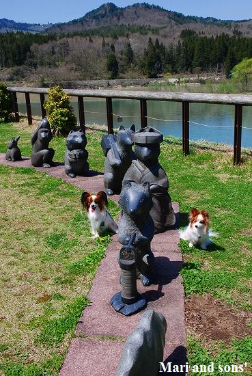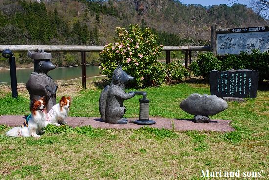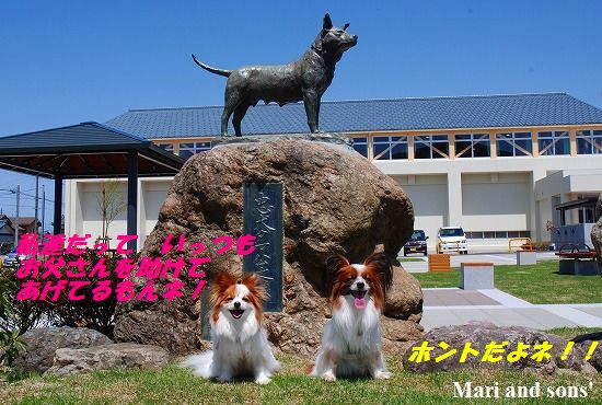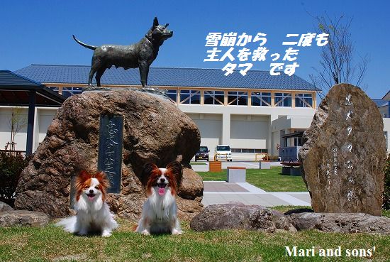 また 市のHPを拝見すると 主人を雪崩から二度も助けたという ”忠犬タマ公”の話が載っており 市内にそれを顕彰した像があるということでしたので そこへも寄ってみました でも うちの まりや康太だっていつもおとうさんを守ってくれているのです |