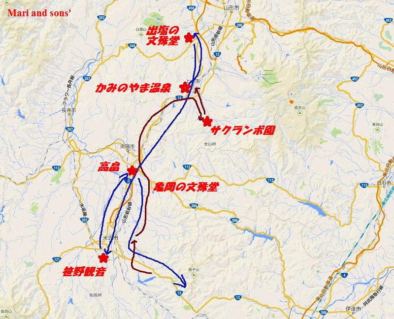 例年ですと山形は寒河江近辺でのサクランボ狩りでしたが 今回は少し南に下がった上山で楽しみたいと思います ここは以前こんにゃく料理で有名なこんにゃく番所に立ち寄ったことがあるだけですが 上山は温泉でも有名なので楽しみです