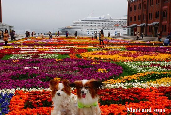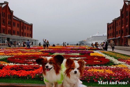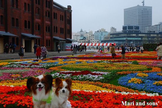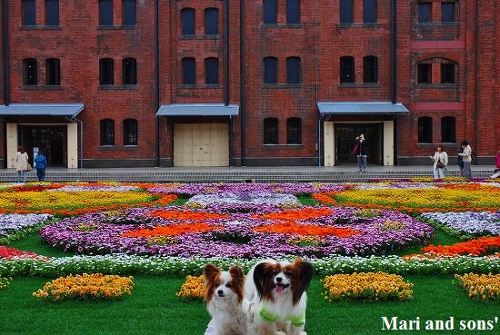 少し込み合った首都高を抜けて久しぶりの横浜みなと未来地区です なんと立派になったことか!! 其れやあれやを見渡しながら進んで 目的の 横浜赤レンガ倉庫街 に到着です 駐車場からレンガ倉庫を回りこむと その中庭に一面の御花の絨緞です |