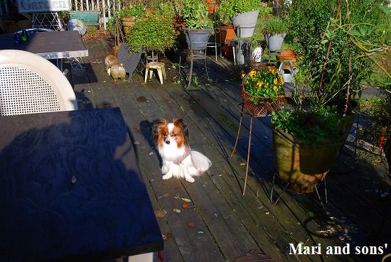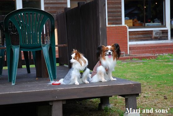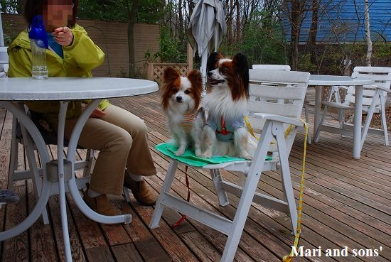 スタジオーネから程ない距離でしたので今度は難なくたどり着きました テラスも雨が上がって使えるようになったと準備してもらえました まり達も椅子を使えるようタオルを敷いていただけました