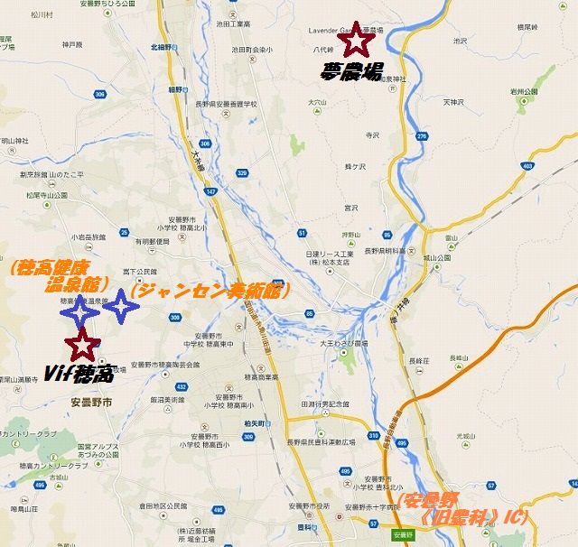 池田町の案内図は 以前の訪問時に ”あずみ野・池田 気ままマップ” というものをもらっていたのでその案内に従い 高速からR19で長野方面に進み池田町への近道と示されていた日野橋を渡り 山道をクネクネ辿ってゆくと その先に 目的地の 夢農場さんがありました |