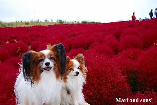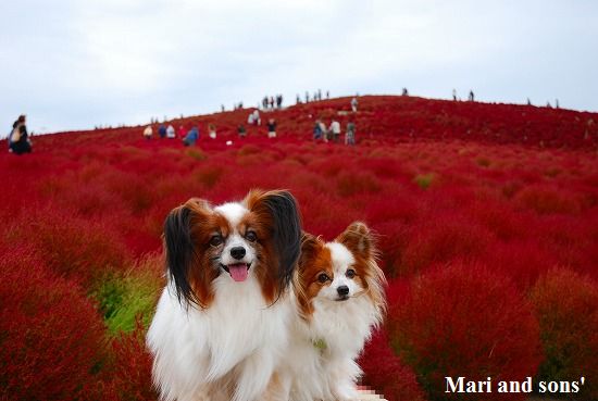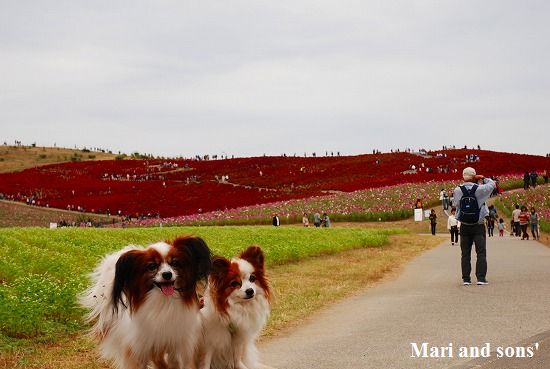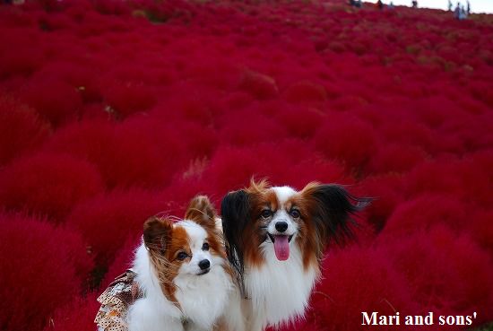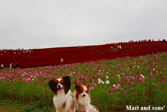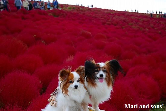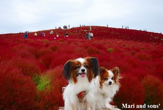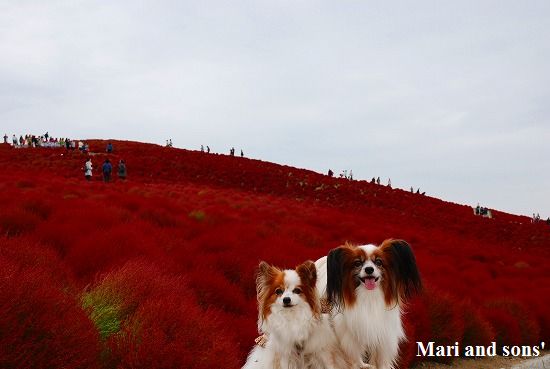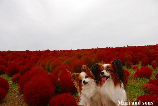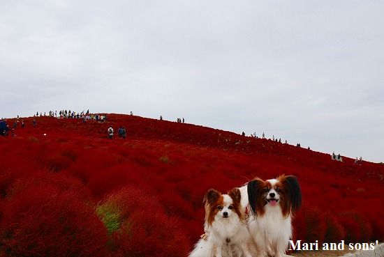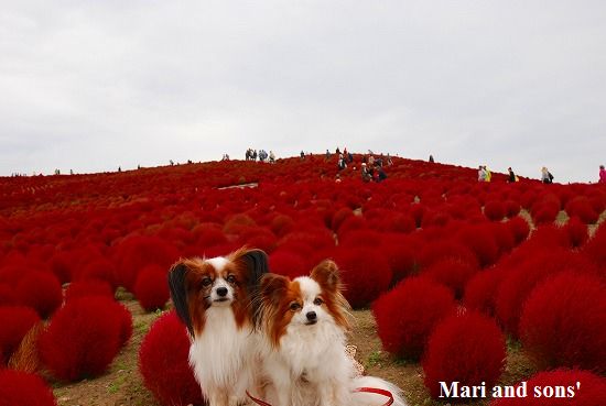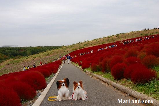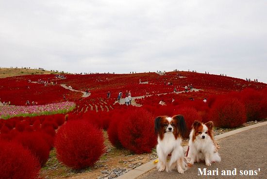 秋の気配を感じさせるコキアの紅葉を二人の背景に収めたくて 茨城は国立ひたち海浜公園へ出掛けて来ました