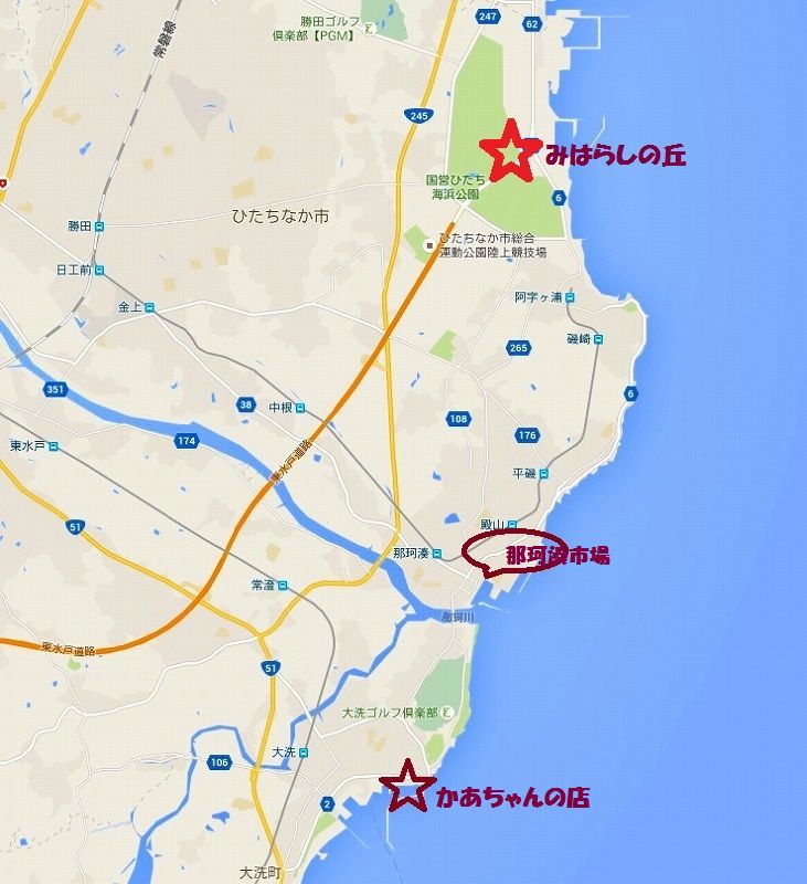それに この辺りは漁港が多くて海産物も豊富です おとうさんが調べた所によると ひたちから川を越えた大洗に美味しい食堂があるそうなので そこをまず訪ねます