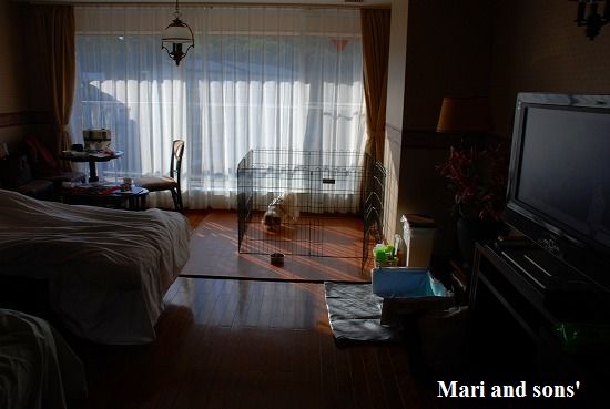 さて 通された部屋は玄関に戻る際に道に迷うほど館内でも一番奥まった所でしたが 広いし綺麗! そして案内にも有ったようにメゾネットタイプの部屋なので二階には寝室専用の部屋がありました 夜もグッスリ! 夜中もまり達はおとなしくおとうさんと過ごしてくれました 朝の散歩に出掛けて 康太の”落し物”も正常に近づいていました ヤレヤレ!です