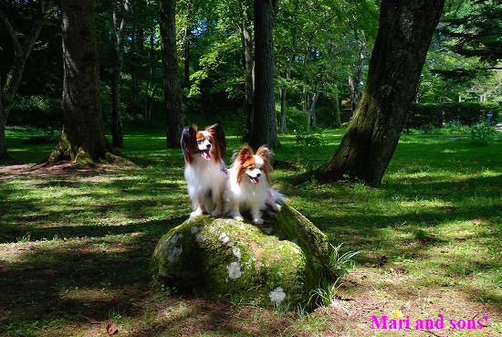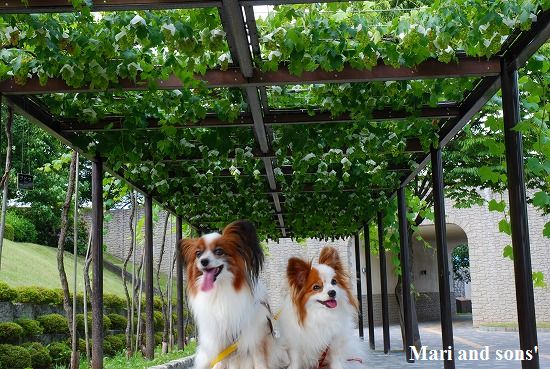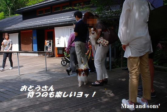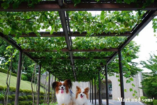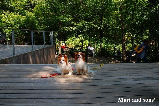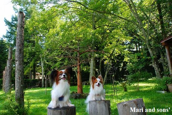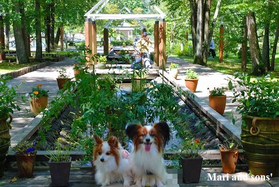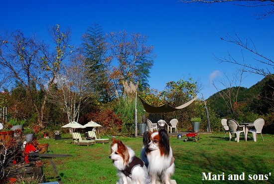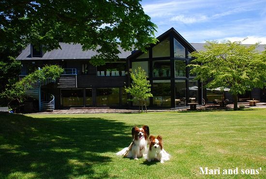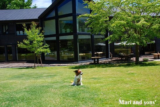 来意を告げると 外のテーブルに日傘を立てかけてもらい 目の前の大きく枝を張ったヤマボウシの木陰も手伝い気持ちの良いお昼時となり みんなでゆったりとそして美味しくいただけました 康太もまりも 食事の後広々とした芝生で嬉しそうです |