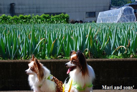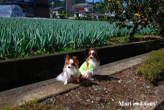 朝 まり達を散歩に連れて出ました まだ6時過ぎで静かな 気持ちの良い朝です |