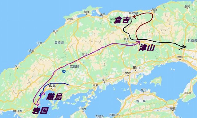 駐車場のお母さんに聞くとやはり40分ほどの距離です 今晩の宿 岡山・津山へそれ程の負担のある距離ではありません おばあちゃんもこの辺りには来た事が無いということでもありますし 車を西へ走らせることにしました |