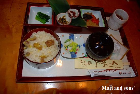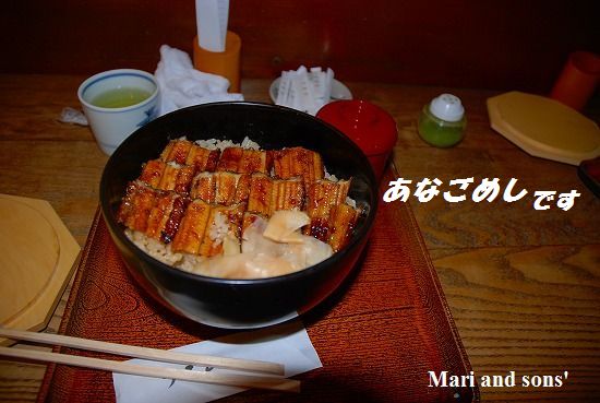 フェリーで宮島口に戻りましたがまだ11時過ぎです こんな天気ですからどうしたものかと思いましたが おとうさんの 広島で広島焼きでも食べるか!? という提案は却下し とりあえず 宮島名物のアナゴ飯をおばあちゃんに試してもらうことにしました お昼を食べました さて・・・となって 前回同様で芸が無いと思ったのですが ここから近い名所でもあるので 岩国の錦帯橋を尋ねてみることにしました |