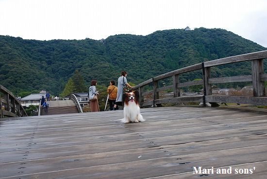 因みに 錦帯橋を渡るには有料なのですがゴンドラ代などのセット料金も設定してありました でも 係りの女性が このセット料金にはお城の入場券も含まれるがワンちゃんはお城に入れないのもしお城へ入らないのなら別々に購入した方がいいですよ とアドバイスをくれました 因みに お城の前に休憩所があり岩国の案内ビデオが流れていました 聞くと 錦帯橋と呼ばれるのは近年のことで 江戸時代は ただの大橋と呼ばれていたとか ふ〜む 勉強になります |
