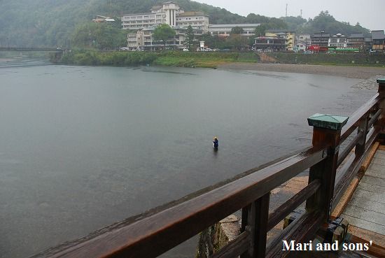さてまた雨の中同じ行程を踏んで錦帯橋の袂までやって来たのですが 雨も強くなるし 駐車場の足場も悪いしでおとうさんが車を持ってくることになりました