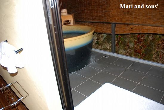 ここは部屋の横にお風呂が設置されていました でも洗えないとのことで ただ湯浴みするのみです |