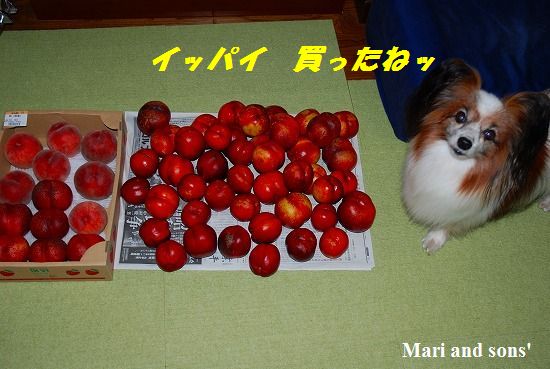 康太はブドウは禁忌ですが 今シーズン最後のモモの試食品を分けてもらって |
