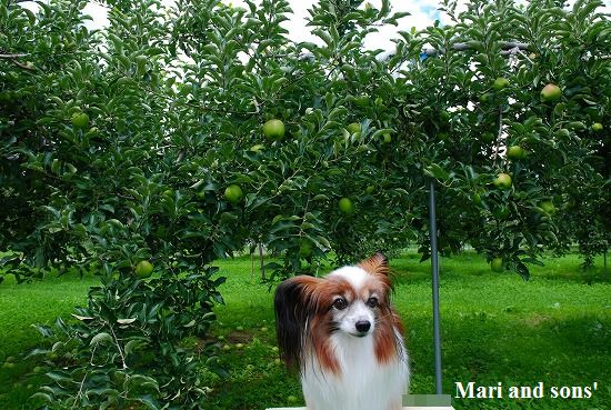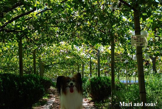リンゴ畑は開放的ですが 奥のほうのブドウ畑は厳重なフェンスに囲まれていました |