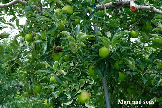 棗のような形でした 聞いたところリンゴの一種だそうで 8月には黒く色づくそうです |