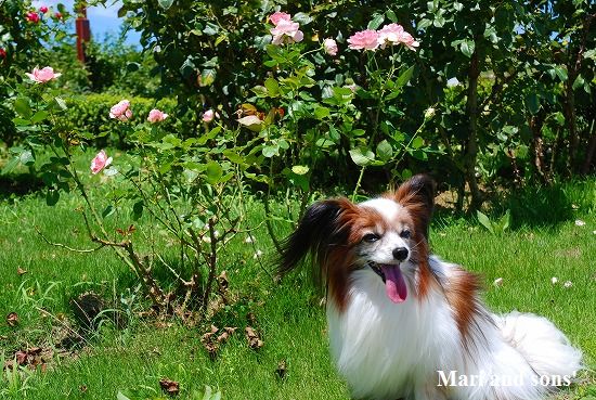 おかあさんが リードをしっかりと握り締めて ハイ パチリ! |