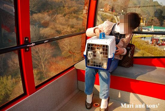 ロープウェイを利用するには ワンちゃんはカーゴに入らなければなりません そのカーゴは貸してもらえるのですが 運賃がかかります |