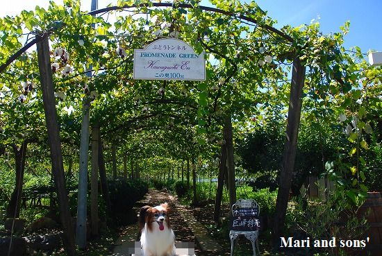 お店の奥はぶどう棚でトンネルを作ってあり 先へ進むと物販のお店に行き当たります |