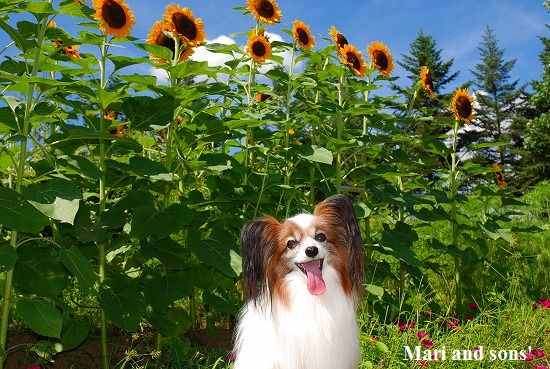 たどり着いたフルーツ公園は 暑い! おばあちゃんは日除けテントの下から動くのを諦めたくらいです 康太と三人で照りつける日差しの中歩きますが 途中ひまわりが目に入りましたのでここで一枚! |