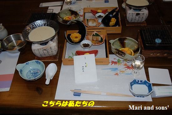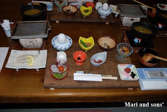 宿の玄関前の楓で一枚です ここの食事もおいしかった!! またマツタケが出ましたがこちらの方が香と歯触りがうれしいものでした それに 飛騨牛のステーキ!!!! 塩コショウがされていなければ 康太にも食べさせてあげたかったッ・・・・ |