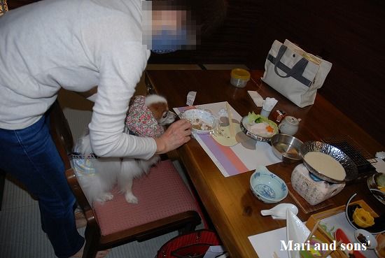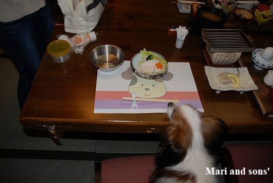 康太がお腹を壊したので宿泊の予約の際に康太用にとお願いしていたトッピングは取りやめて 茹でた鶏のささ身に変えてもらったのですが うわっ すごい量! 冷蔵庫にあずかりますよと言ってもらって朝ご飯にも上げる事にしましたが 結局お腹具合との相談で全部はあげられませんでした |