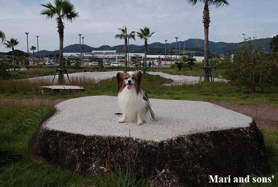 道の駅の周りは公園として整備されていて ワンちゃん連れで散歩している人も多く見えます 康太も真似して園内散策です |
