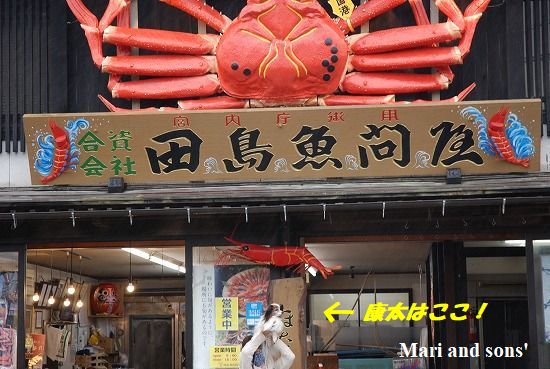 立派な看板です こんなカニの飾りがついた店がこの先にも・・・ あちらは食堂でした |