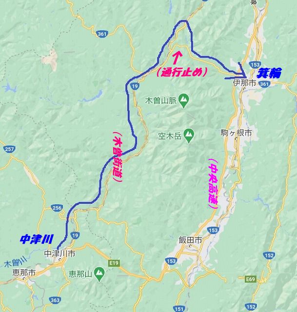 いつもなら一休さんで栗おこわ定食を ということになるのですが今日は朝ご飯でお腹がいまだに一杯なのでまたの機会に譲り 木曽街道をたどり伊那方面に向かいます と 伊那方面に抜ける権兵衛トンネルにつながっている361号線が通行止め!!! エッ! 予定が狂ってしまうじゃないの どうする どうしようもない!!ということで車を進めていると あれ 鳥居峠の先で右折する車がやけに多いのです なんで?っと地図を見るとこの山道をたどると権兵衛トンネルにつながるようで 皆さんこちらを辿って伊那へ抜けていたのです そんな譯で私たちもUターンしてこちらを辿ります 道中紅葉が綺麗でしたから写真を撮っておけばよかった |