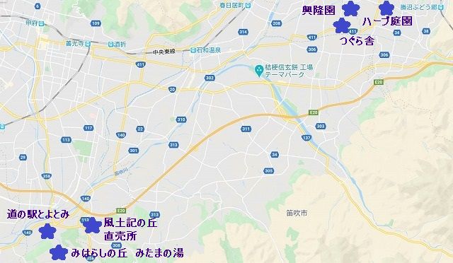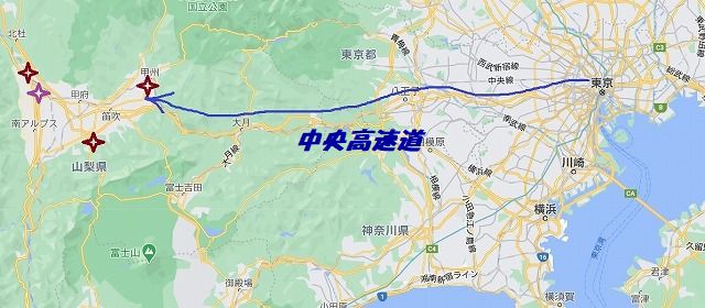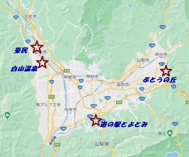 出かけたのは お天気予報も芳しくないので近場の山梨に決めました 果物大国ですし 温泉もいたるところに沸いています 少し具合の良くなった気がするおかあさんも久しぶりに温泉にでも入るかという気分になったので狙いは良さそうです |