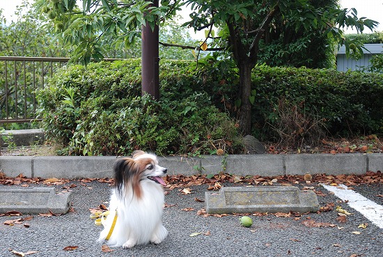 駐車場には昨日の雨と風のせいでしょうか 栗や柿の青い実が散らばっておりました |