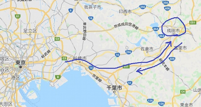 順調に車を進めて富里ICで降りて市内へ進みます |