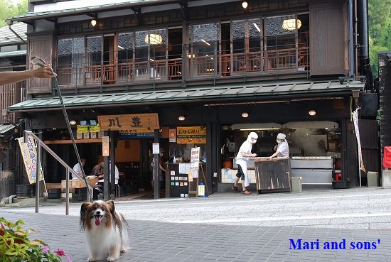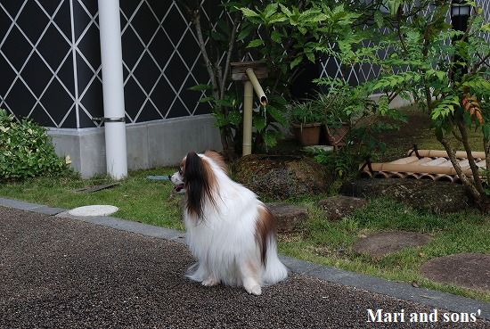 しゃれた泉水の前で一枚 と思っていたらおかあさんはもう店内へ |