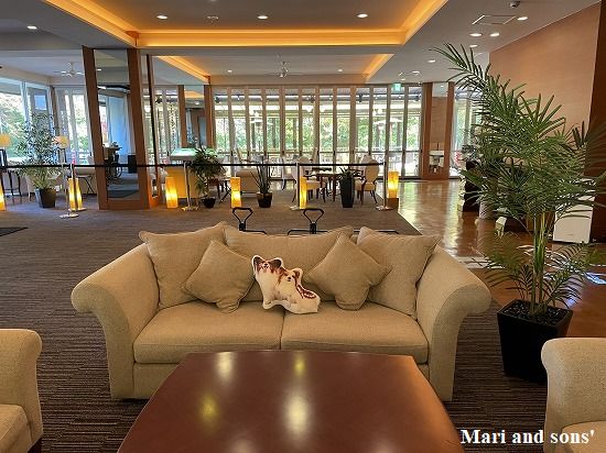 ホテルを出る前に まりと康太をロビーで寛がせます |