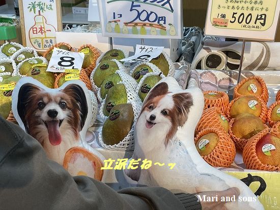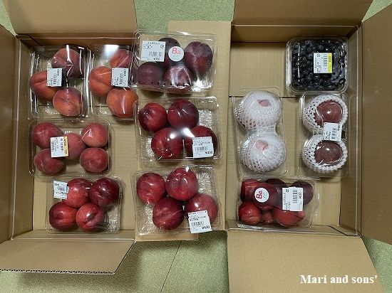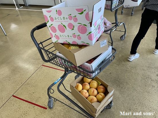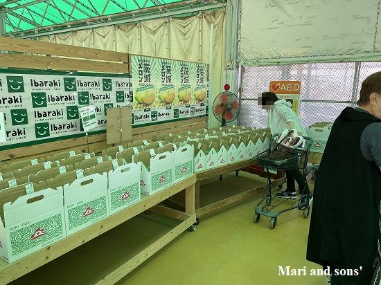 これ以外に ラフランスの まぁ大きな粒のもの(さっきの箱入りのものが一個で買えそうなお値段ですが)などが並べられていました おばあちゃんは友達にあげるからと購入していましたが 我が家はカリフォルニアで打ち切りました |