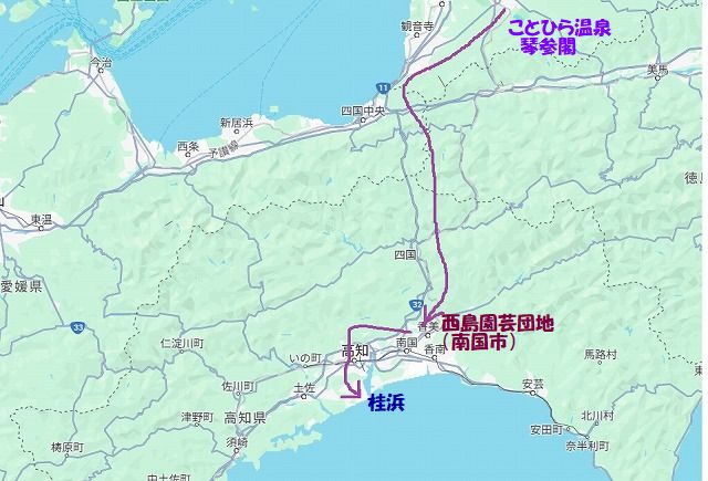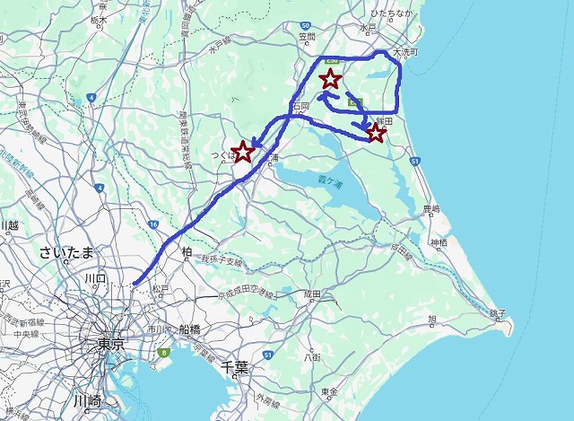 今回の立ち寄った場所の地図です