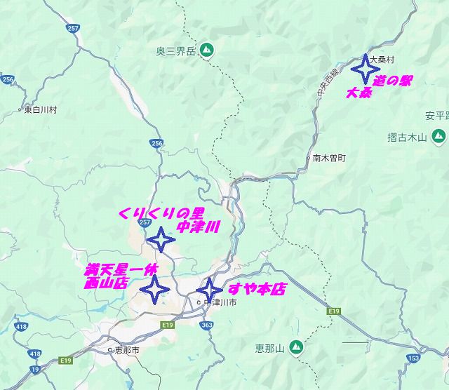 今回の中津川近辺の訪問先です |