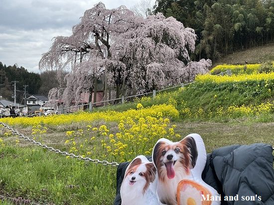 滝桜のピンクと周りに広がる菜の花の黄色が綺麗でした