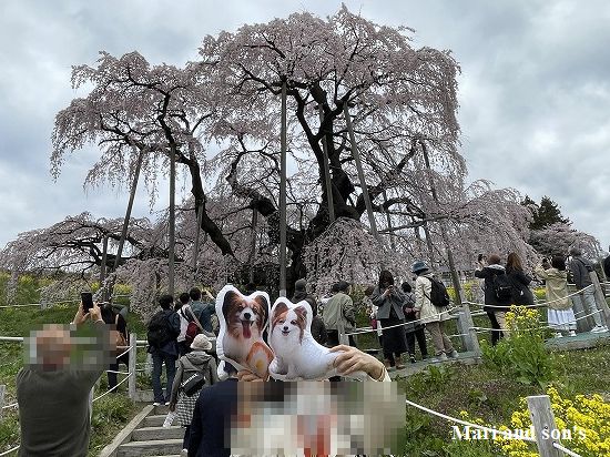近所のサクラもなんだか風雨に痛めつけられて今一つの有様ですそんなら 一つ足を伸ばして 福島は三春の滝桜を愛でてはどうかと おとうさん 調べてみると日程の合う日が満開予想日のようです じゃあと おばあちゃんを誘っての日帰りドライブとなりました |