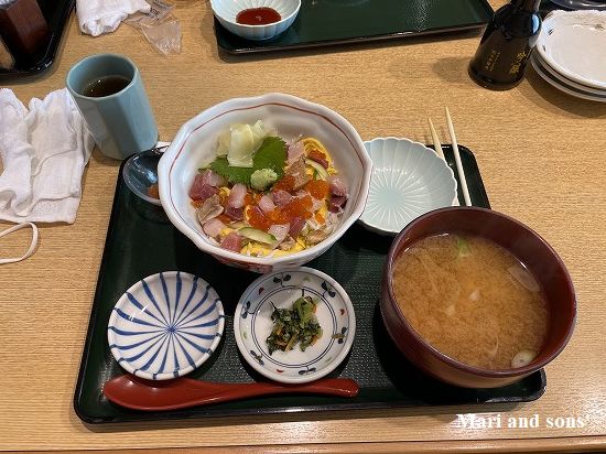 おかあさんの夕食 近くの駅前市場併設の食堂で 海鮮丼です |