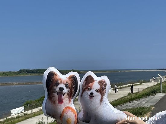 開けた河口の堤防上に開設された商店街です 開放的で気持ちがいい |