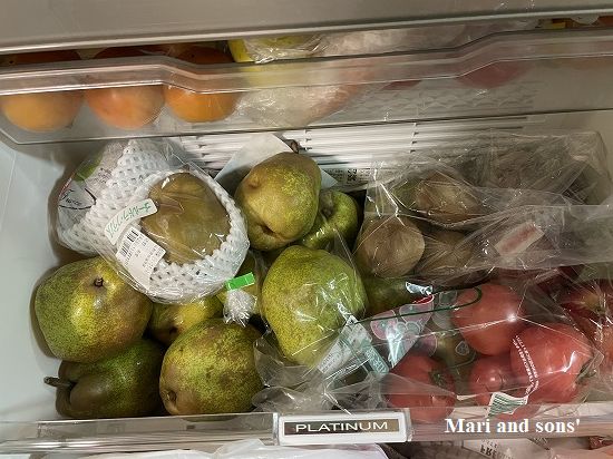 結局自宅へ戻って 傷まないようにと冷蔵庫に入れたら野菜は入れられずいつものように”果物室”に成り代わりました でも カリフォルニアもラフランスもコウトクも星の雫もおいしくて 朝の食卓を賑やかにしてくれています |