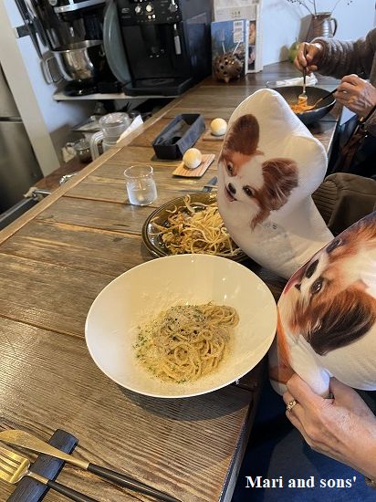 おとうさんは追加費用の発生するマッシュルームと黒トリュフペースト オジチャンは写っていませんが 季節野菜のバーニャカウダのペンネ 美味しかった! おばあちゃんも完食です |