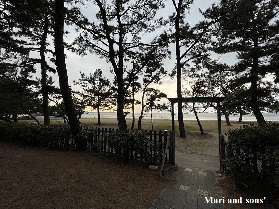 そろそろ夕方が近くなりましたので 今日の宿へ向かうことにしました 島と言っても大きな淡路島 北端から南端近くまで走ることになりましたので 道中を楽しむことができました 上の一枚はこの日の宿国民宿舎慶野松原壮さんの裏庭から望む海水浴場の夕景です (この穏やかさはここまでのこととなりました) |
