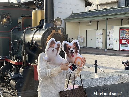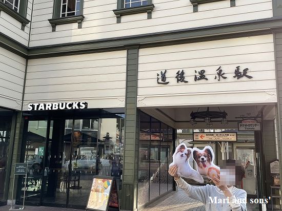 坊ちゃん列車と駅舎の前でそれぞれ一枚 |