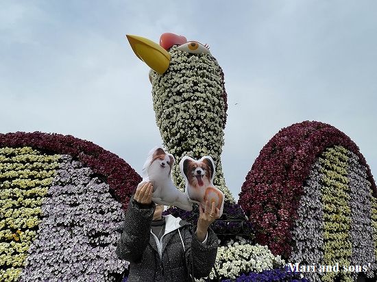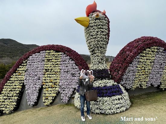 近くにはこんなおっきなニワトリでしょうか 鳥を花で模ったモニュメントがありましたので ハイポーズ |
