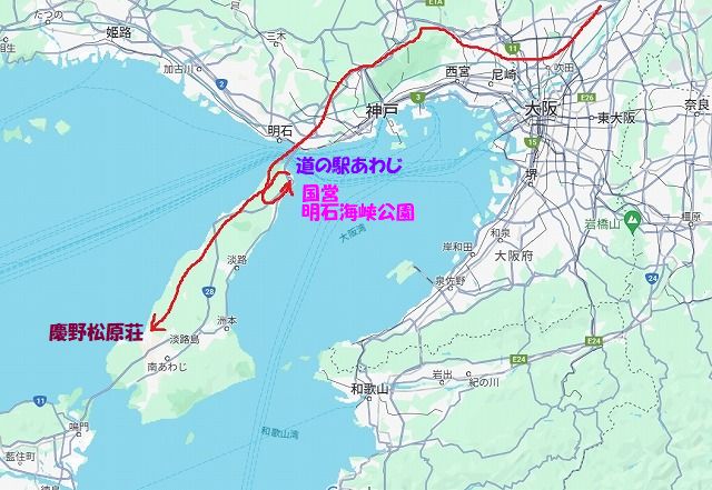 淡路海峡大橋の袂に開設されているので橋と向こうの神戸の街を背景に一枚です |