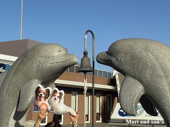 鐘を鳴らしていたので見ると イルカの像がありましたので記念の一枚です |