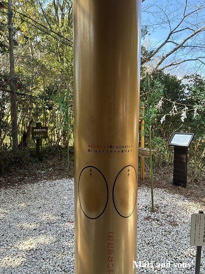 これが願掛けの柱 丸い印はここに手を当てるように との意味合いです |