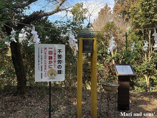 上がってみると左にはこんな 鐘が置いてあります 先ほど下にいた時聞こえてきたのはこの鐘の音だったようです 私たちはたたきませんでしたが・・・・ |