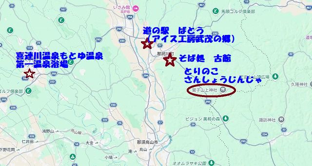 これが今回の訪問先の位置関係です さくら市とか馬頭とか初めての土地でしたからとりわけ何が有名なのかは分かりませんでしたが結構楽しめました でも月曜はやはり避けた方が良かったと反省です |